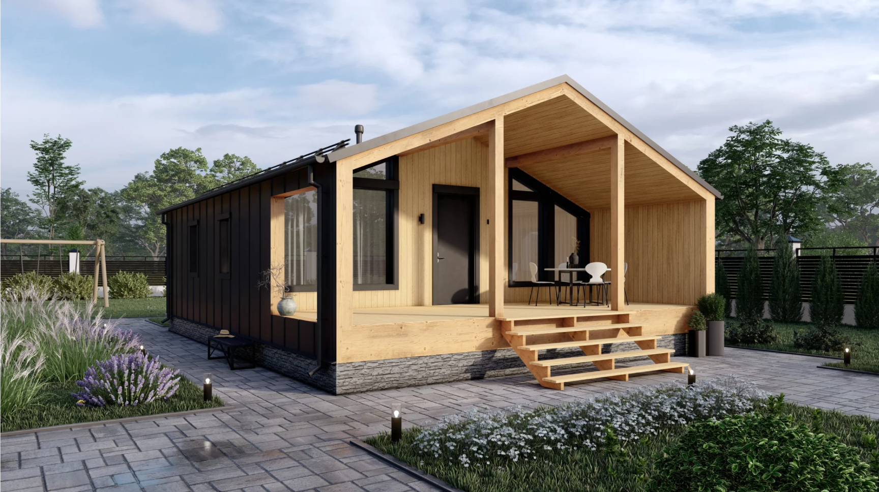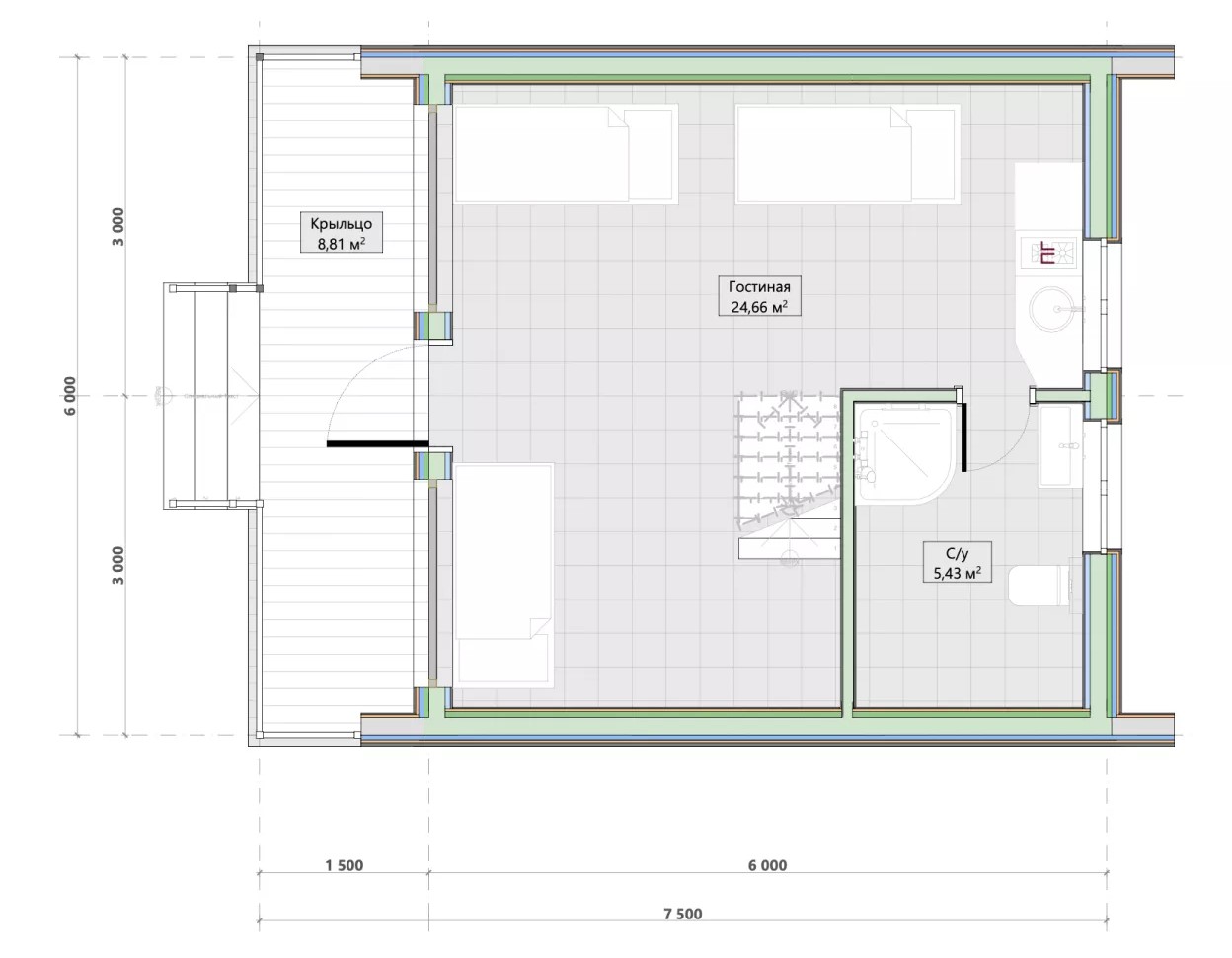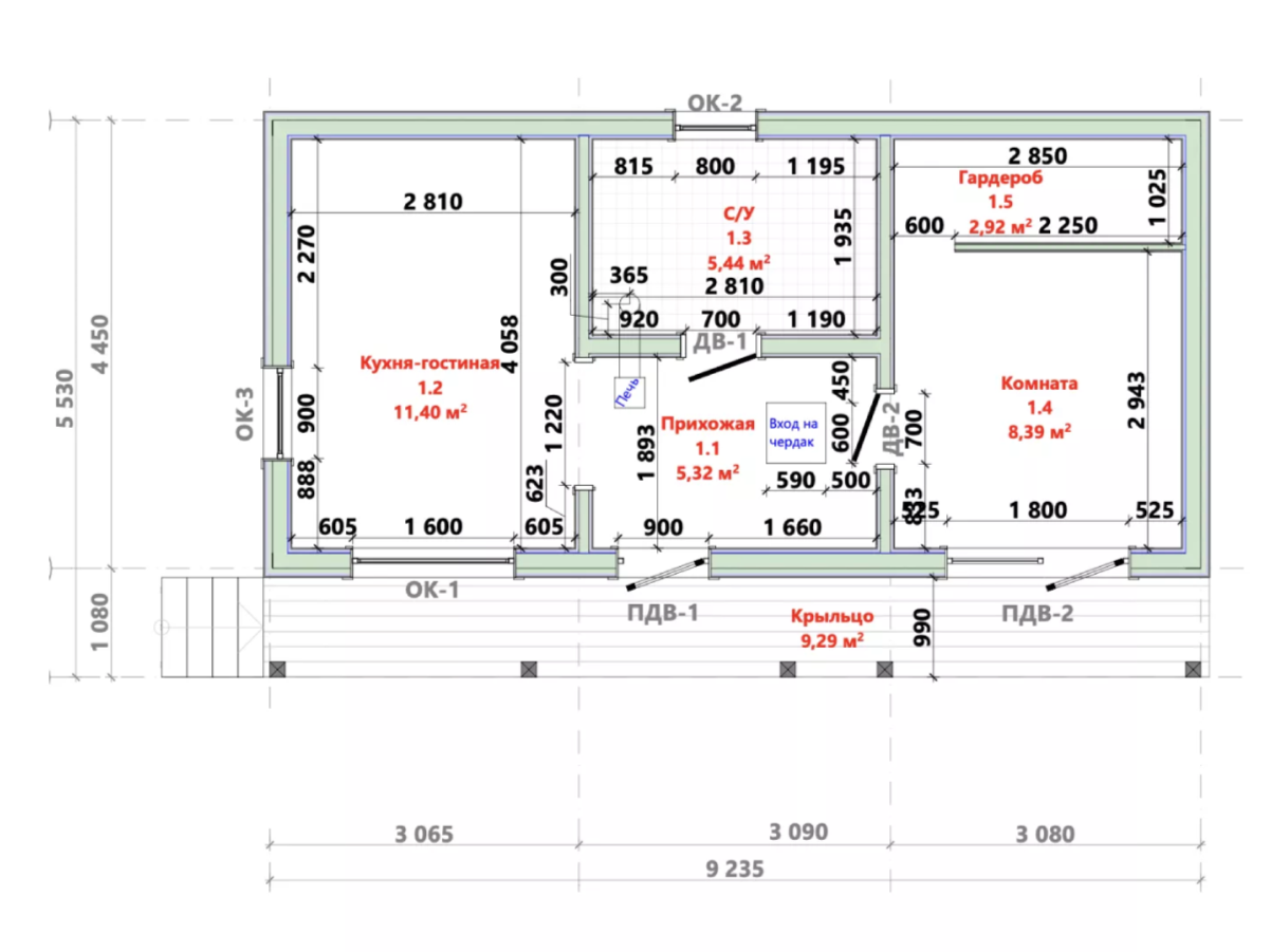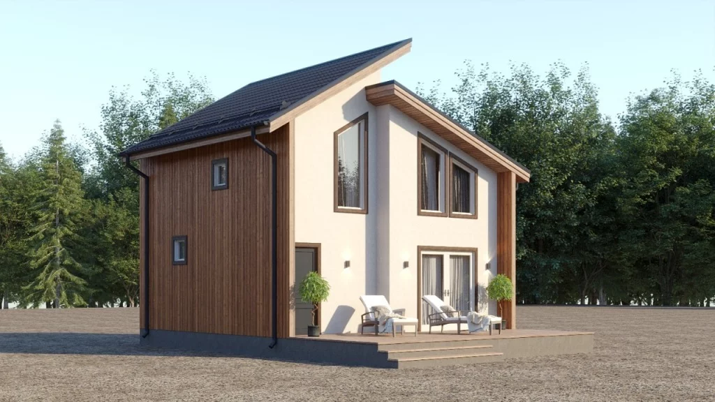 Технология строительства: .Каркасный Мансарда: Да Габариты дома: 9,2*5,6 Площадь: 51Жилая площадь: 38.86 Этаж: 1 Количество комнат: 1 Количество санузлов: 1