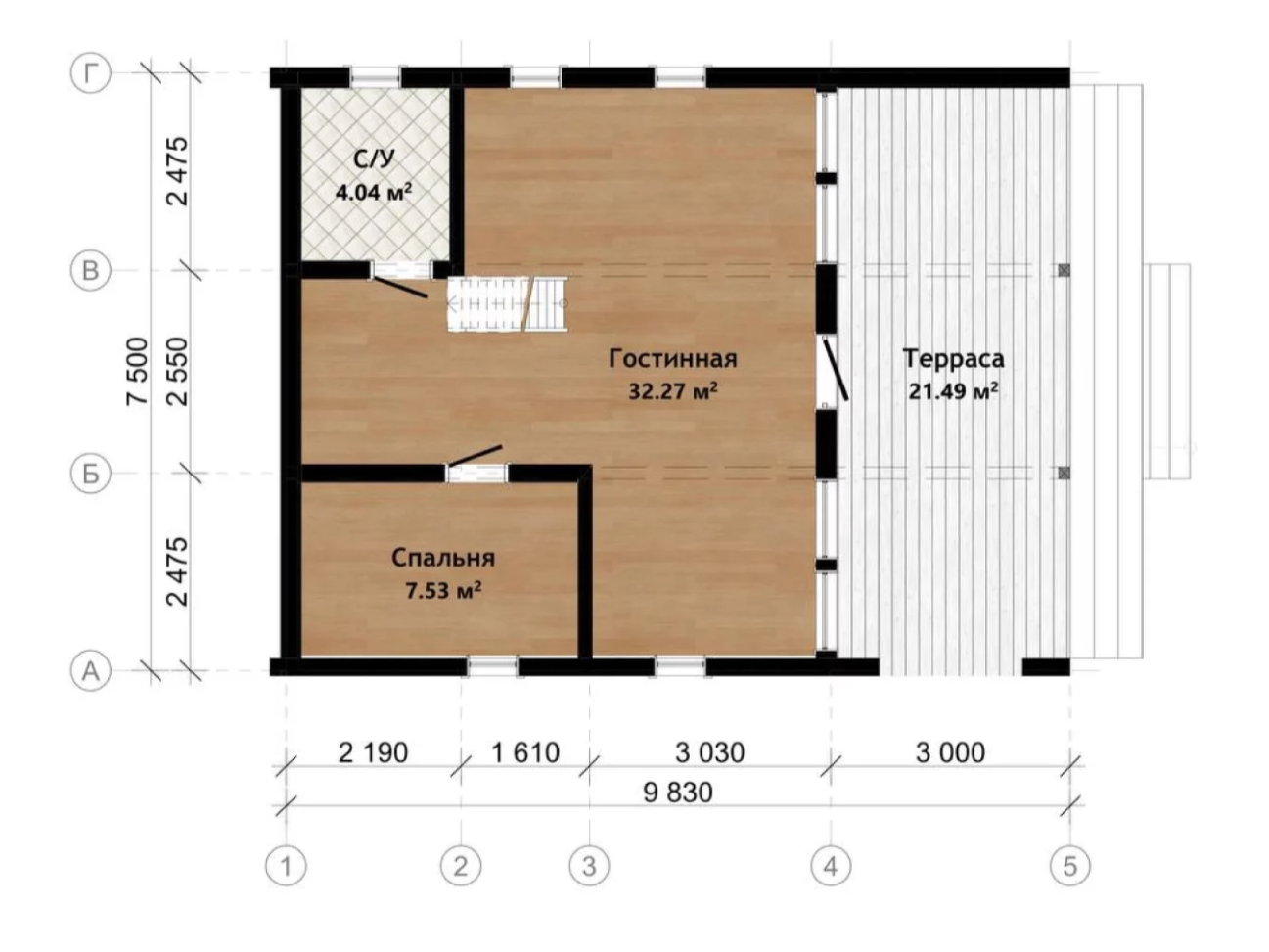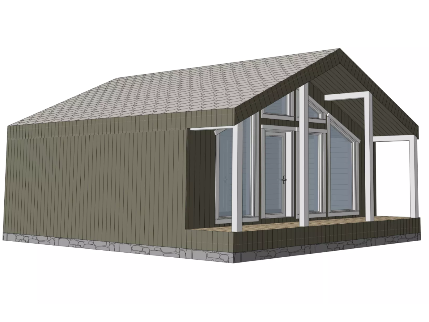 Технология строительства: .Каркасный Мансарда: Да Габариты дома: 9,83*7,5 Площадь: 74Жилая площадь: 65.33 Этаж: 1 Количество комнат: 1 Количество санузлов: 1